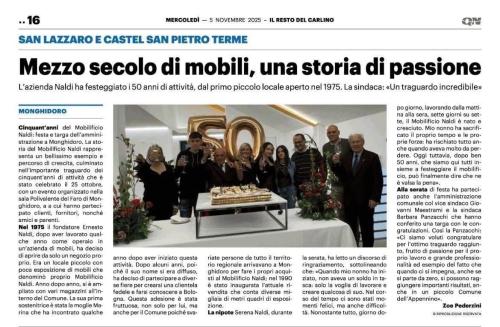 La scorsa settimana a Monghidoro si sono festeggiati i cinquant'anni di attività del Mobilificio Naldi. L'articolo oggi sul Resto del Carlino.