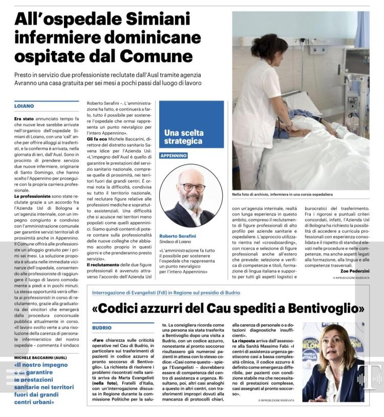 DUE NUOVE INFERMIERE originarie di Santo Domingo, saranno presto in forza all’ Ospedale Simiani con un contratto a tempo determinato di 6 mesi. Le infermiere hanno scelto l’Appennino per proseguire con la propria carriera professionale.