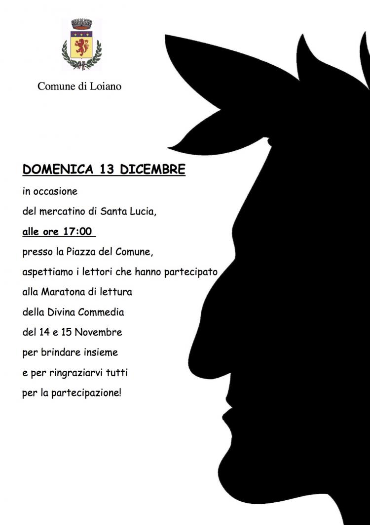 Domenica 13 dicembre un brindisi con i partecipanti alla Maratona di lettura della Divina Commedia