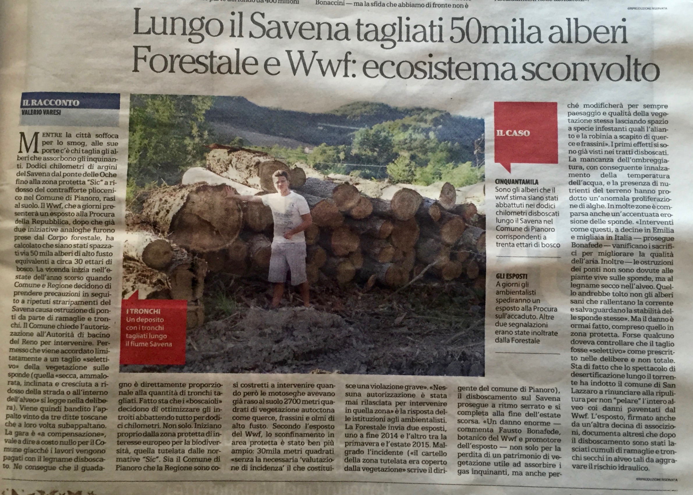 Con un articolo a firma di Valerio Varesi apparso oggi (31 dicembre 2015) su 'La Repubblica Bologna, si torna a parlare dell'imponente taglio di alberi avvenuto lo scorso anno nel lungo Savena.