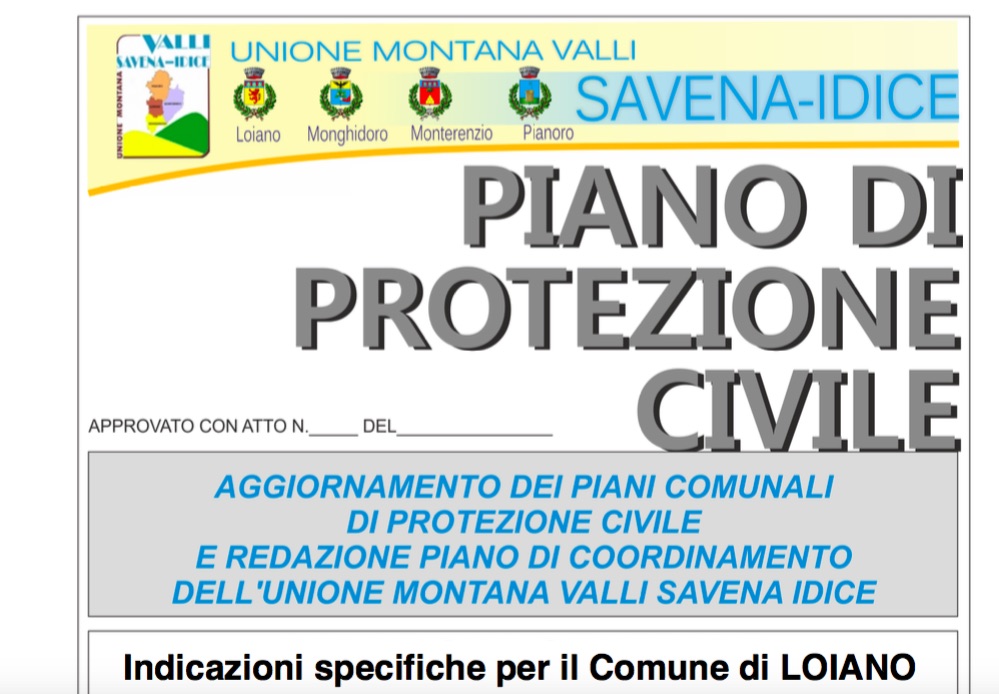 Sul sito del Comune di Loiano è pubblicato il Piano di Protezione Civile con le indicazioni specifiche del nostro territorio (allegato). Il Documento non è molto aggiornato (novembre 2013), ma riporta comunque dati interessanti riferiti alle aree a rischio idrogeologico, incendi, rischio chimico e sismico. Questo oltre alle funzioni dei vari Organi, alle fasi di allertamento, ai modelli di intervento, eccetera.