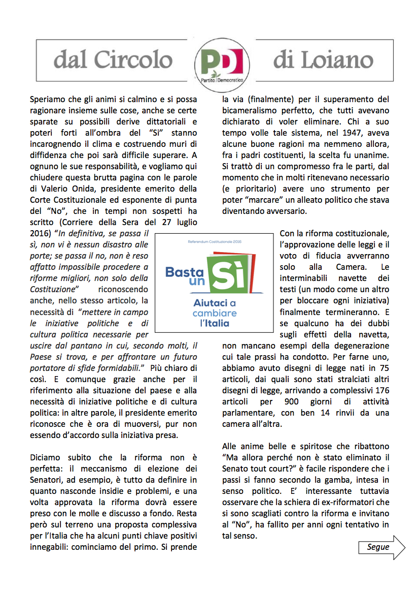 E' in distribuzione in questi giorni il nuovo numero del giornalino del Circolo PD di Loiano. Oltre ad una scheda relativa al Referendum del 4 dicembre, anche articoli sulla situazione della Gesco, della Scuola Elementare, rifiuti e molto altro.