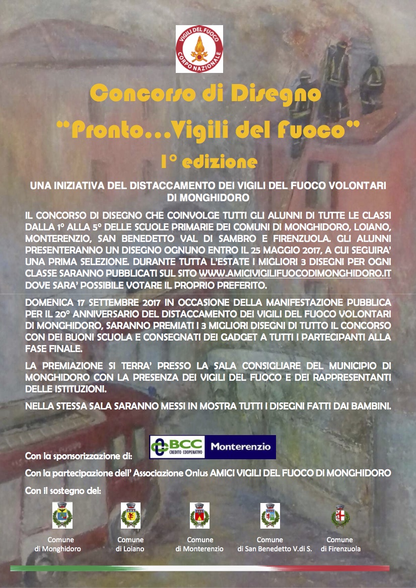 Domenica 17 settembre 2017 in occasione della manifestazione pubblica per il 20° anniversario del Distaccamento dei Vigili del Fuoco Volontari di Monghidoro, saranno premiati i 3 migliori disegni di tutto il Concorso con dei buoni scuola e consegnati dei gadget a tutti i partecipanti alla fase finale.