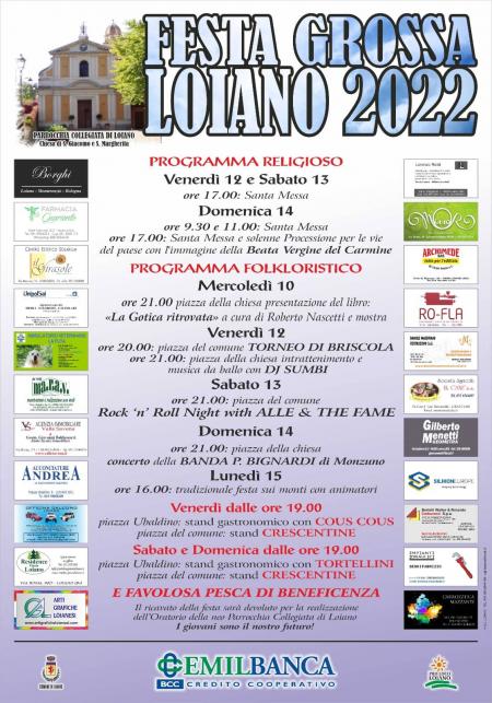 Da mercoledì 10 a lunedì 15 agosto torna la Festa Grossa di Loiano. Il ricco programma si apre mercoledì con la presentazione del libro ‘La Gotica ritrovata’ e poi gastronomia, giochi, musica, pesca di beneficenza.