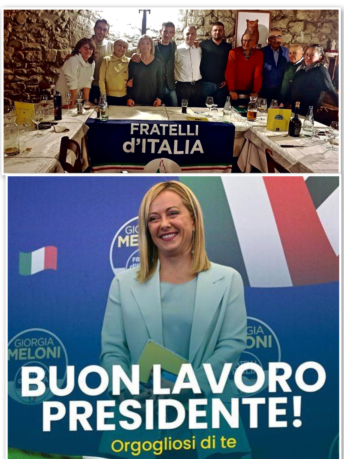 Grazie davvero a tutti quelli che ci hanno creduto, io personalmente sono fiero ed orgoglioso di avere dato il mio piccolo contributo che ha portato ad avere, per la prima volta nella storia della repubblica, una Donna come Presidente del Consiglio. La sfida, come sappiamo tutti, è complicata ma i valori e le idee in questo gruppo sono forti e chiari. Complimenti