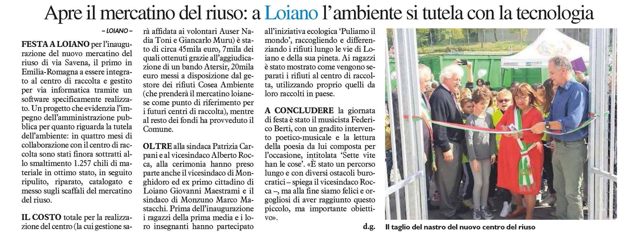 Sono questi i numeri del Centro del Riuso di Loiano che a settembre ha festeggiato il suo 5° compleanno. Il Centro era nato con il chiaro obiettivo di ridurre il quantitativo di rifiuti che vengono conferiti in discarica e dargli una seconda possibilità di utilizzo. Obiettivo che ha superato le più rosee previsioni ed è stato preso ad esempio da moltissimi altri Comuni. I beni si possono acquistare con un contributo volontario ed il ricavato serve a coprire i pochi costi di gestione, ed il resto verrà utilizzato per progetti sociali definiti di volta in volta tra Gestore (AUSER) e Comune.