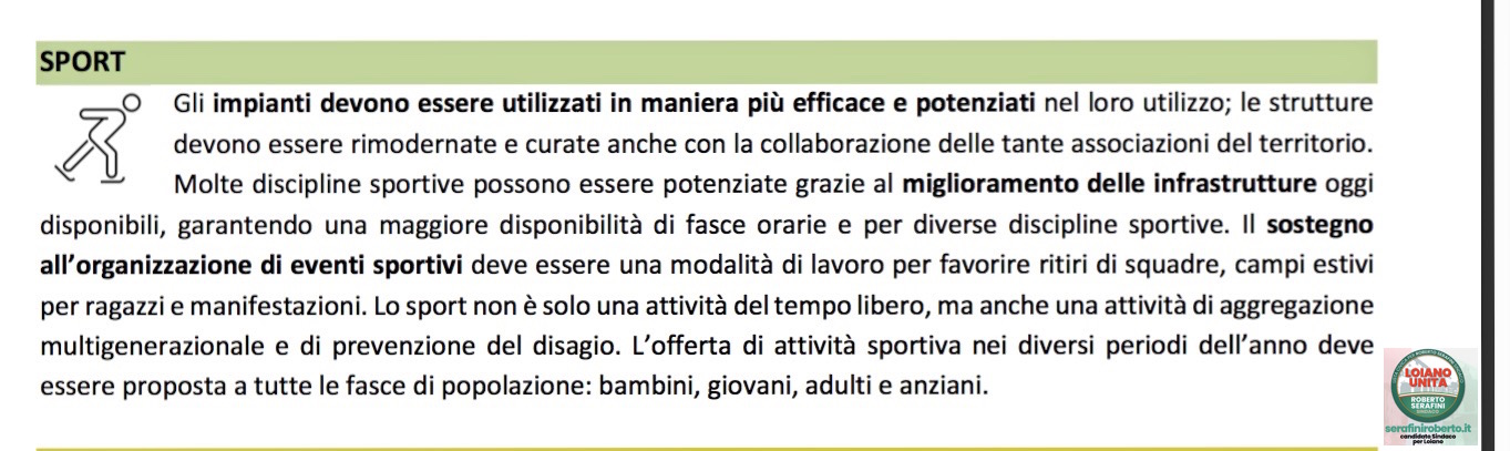 Programmi a confronto: SPORT. Lista civica 'Loiano Unita'