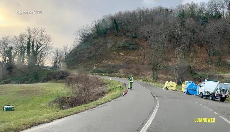 Cassonetti e rami in strada a causa del forte vento