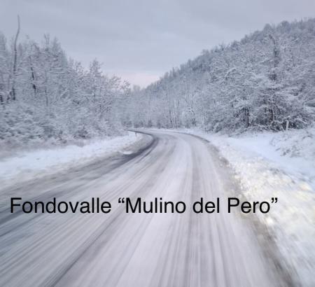 SP59 LOIANO-FONDOVALLE molta attenzione perché è sporca e con lunghi tratti ghiacciati. Soprattutto in discesa può essere pericoloso. E’ sicuramente il tratto peggiore