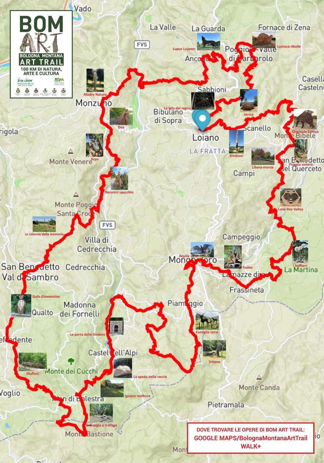 TUTTE LE OPERE DI LAND ART sono state raccolta in una mappa realizzata da Viva il Verde Sono inserite le foto nelle posizioni dove sono installate, oltre ai riferimenti google maps e walk+.