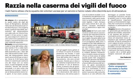 FURTO alla Caserma dei Vigili del Fuoco Distaccamento Volontari Monghidoro. Il Sindaco Barbara Panzacchi: “un gesto sconsiderato che va oltre il danno materiale”. Oggi sul Carlino