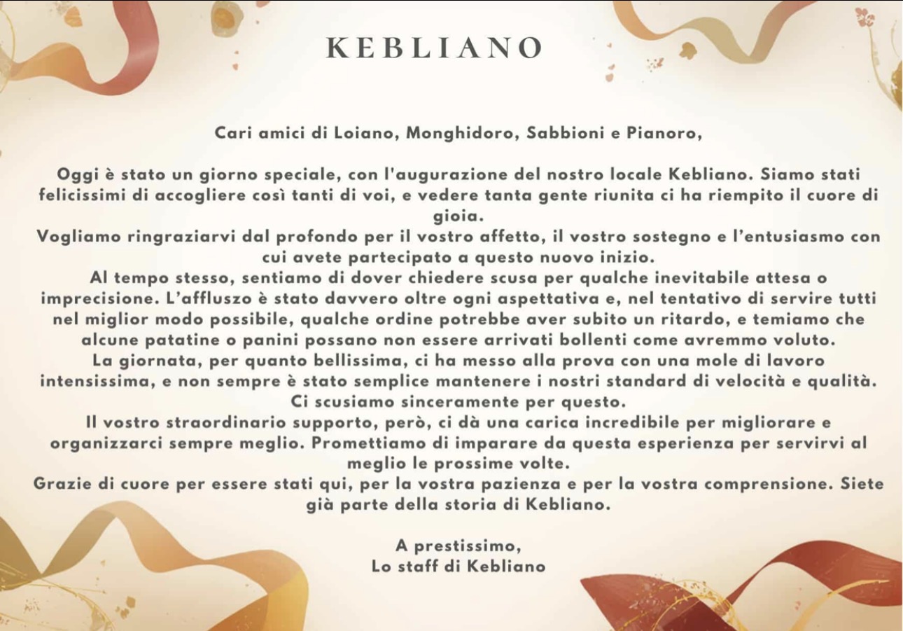 Comunicato dello staff della kebabberia inaugurata ieri a Loiano