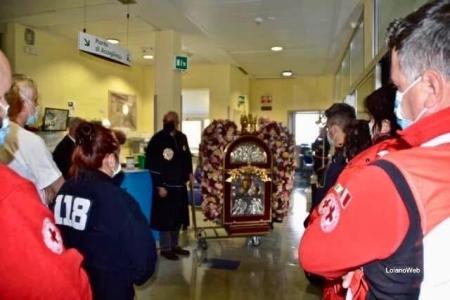 NEL 2021 l’ Immagine della Madonna di San Luca (vittima in questi giorni di un furto alla Basilica), fece visita all’Ospedale Simiani.