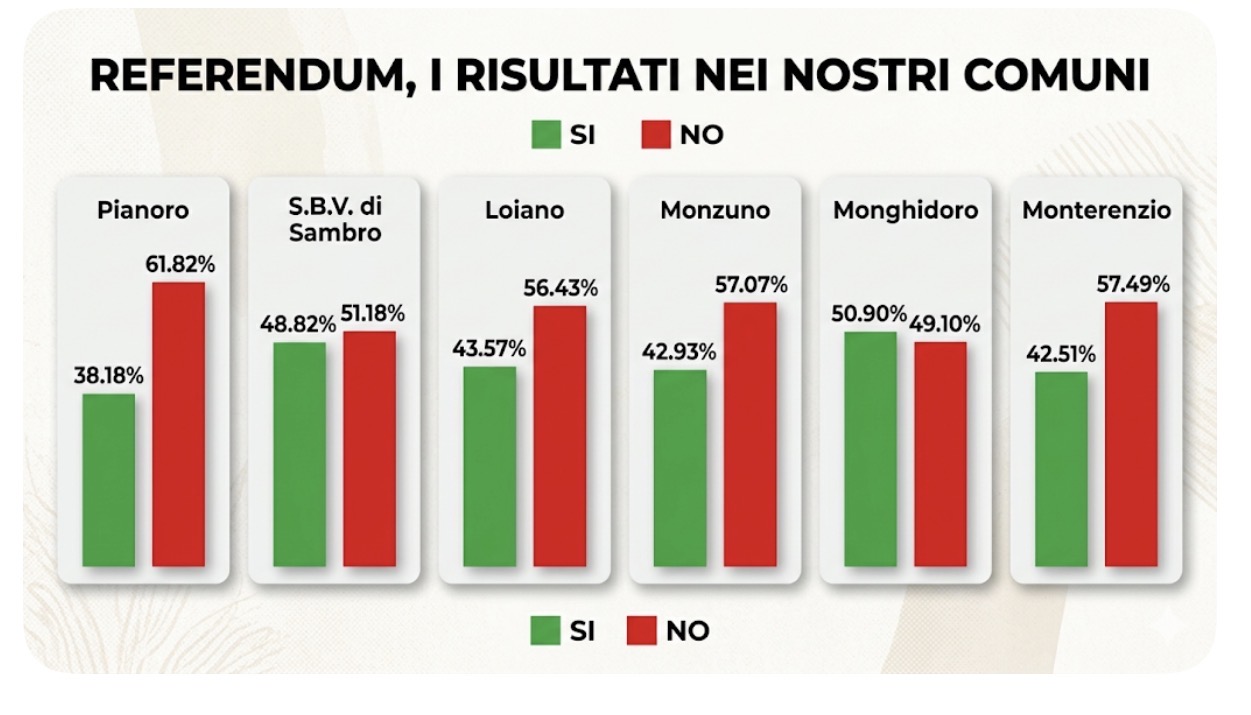 Referendum, nei nostri Comuni ampia prevalenza del NO Fuorché a Monghidoro dove vince il SÌ data pubblicazione: Lunedì, 23. March 2026 - 5:16 Aggiungi un commento Il tuo nome * E-mail * Il contenuto di questo campo è privato e non verrà mostrato pubblicamente. Homepage Oggetto Commento * More information about text formatsPlain textNo HTML tags allowed.Indirizzi web o e-mail vengono trasformati in link automaticamenteLinee e paragrafi vanno a capo automaticamente. Inserimento di commento veloce con la sola verifica della email: Scrivi il tuo nome o un alias e la tua email, inserisci il testo e premi 'salva'. Una email verrà inviata alla tua casella di posta, clicca sul link indicato per completare l'inserimento del commento. Per richiedere la modifica o la cancellazione del commento fare riferimento alla voce contatti. La tua email non sarà mai resa pubblica. Per saperne di più consulta la nostra informativa sulla privacy. Leave this field blank